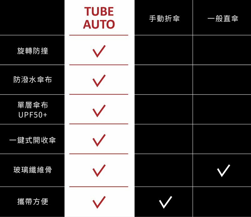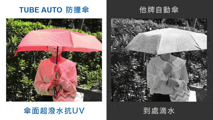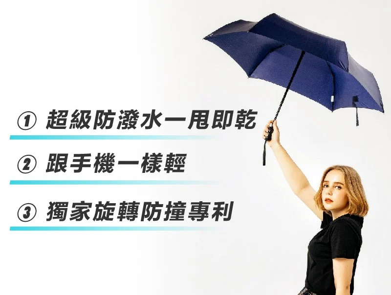 講求行動方便為訴求,輕量化設計方便攜帶,屏除以往對自動傘沉重的觀念。反吹折骨架具彈性,與風反向可折回,不易毀損。