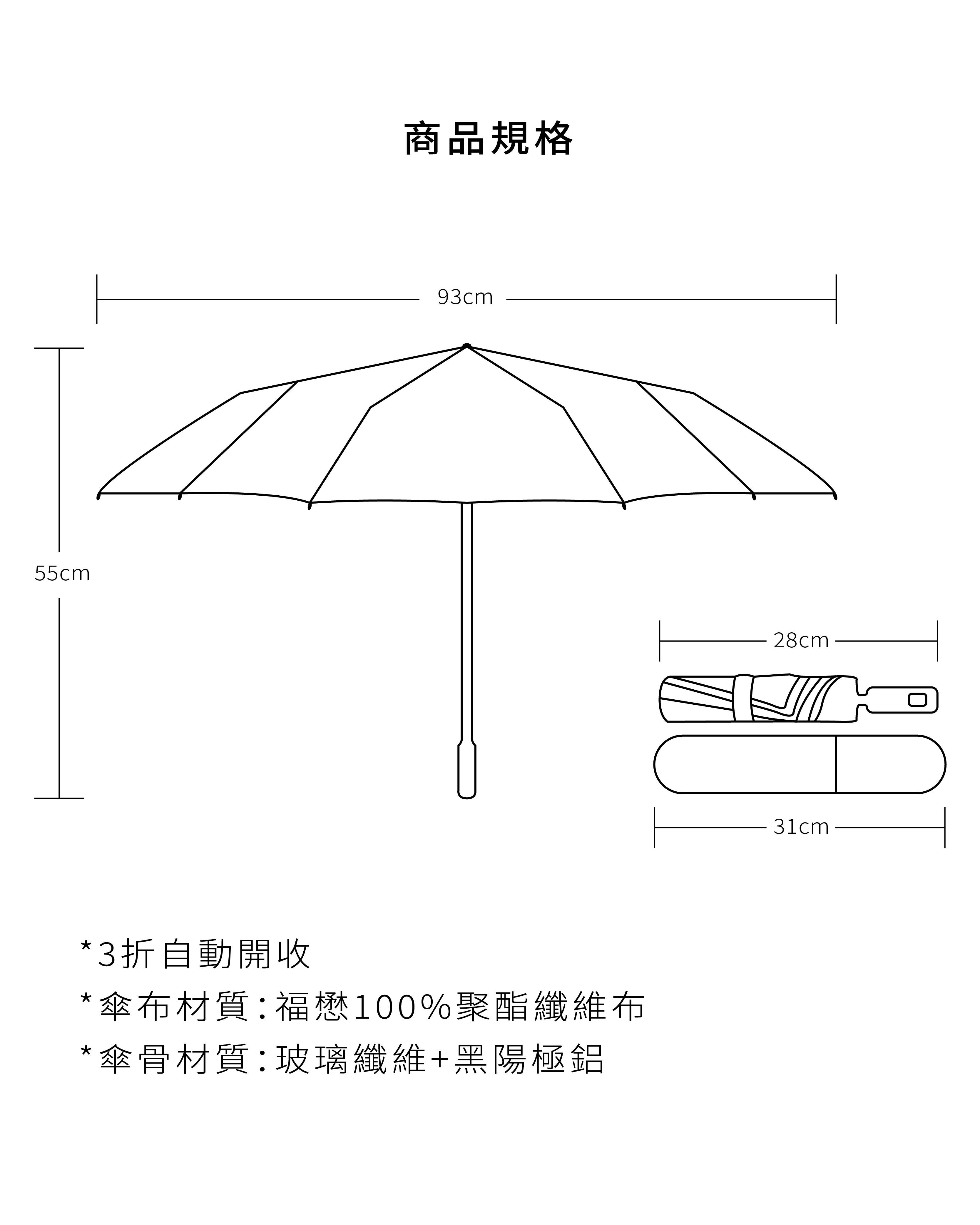 ■ 傘面寬度93cm 高度55cm超強防潑水
